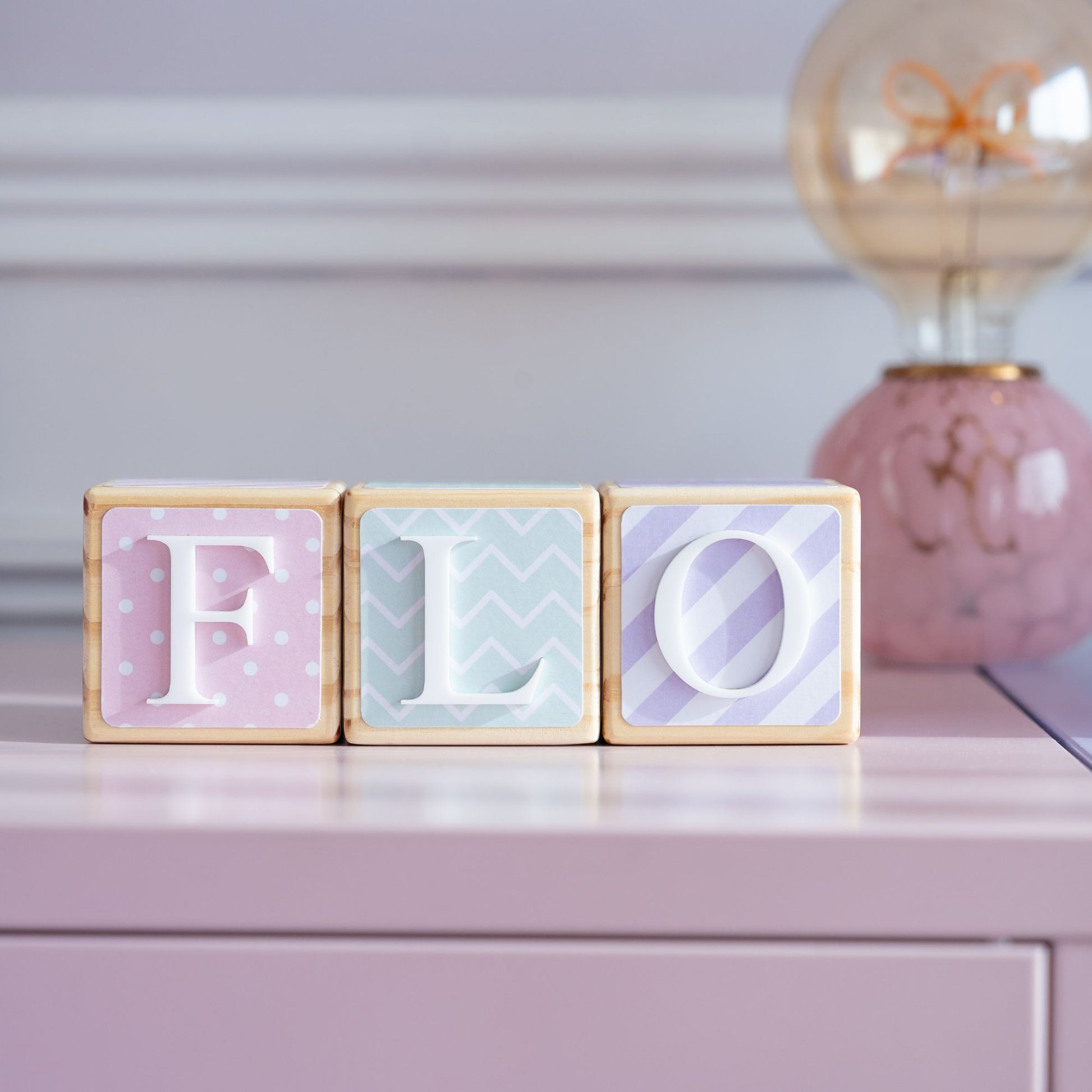 Add a pop of pretty colour to any space with PRETTY PASTELS! These name blocks feature pastel patterns in soft colours that will definitely catch your eye. Suitable for all ages, making them an ideal choice to grow with your child.